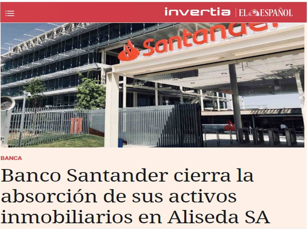Invertia El Español - Banco Santander cierra la absorción de sus activos inmobiliarios en Aliseda