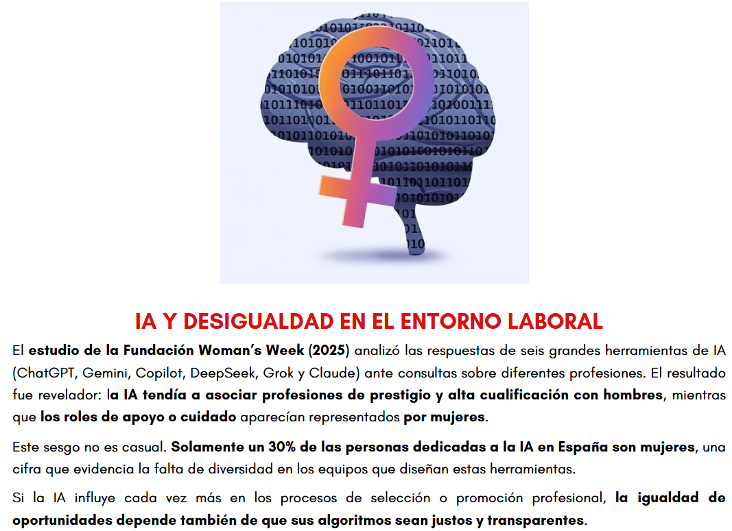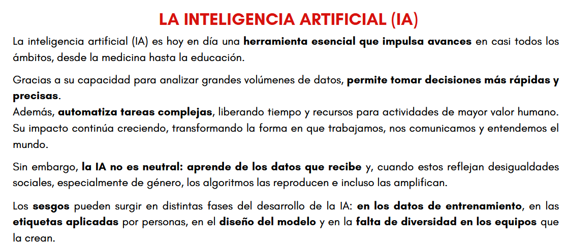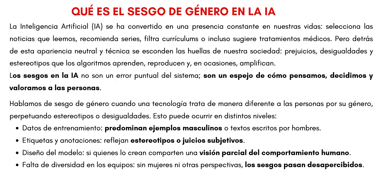 Este año la temática de la edición es “Sesgos de género en Inteligencia Artificial” ya que la IA no es neutral: aprende de los datos que recibe y, cuando estos reflejan desigualdades sociales, especialmente de género, los algoritmos las reproducen e incluso las amplifican.
