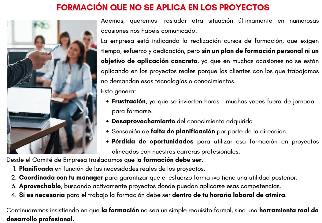 Por otro lado, en muchas ocasiones desde la empresa se pide realizar formaciones que requieren un gran esfuerzo, por desgracia, sin un objetivo concreto, en esos casos parece que no hay un plan de formación encaminado a su posible aplicación en proyectos.