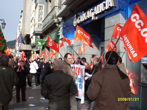 El pasado miércoles, 21 de enero, ha tenido lugar una concentración de delegados/as de Comfia Asturias en la oficina de Caixa Galicia en Oviedo, para protestar contra la política laboral de esta empresa y el atentado que supone la misma a los derechos de los trabajadores.