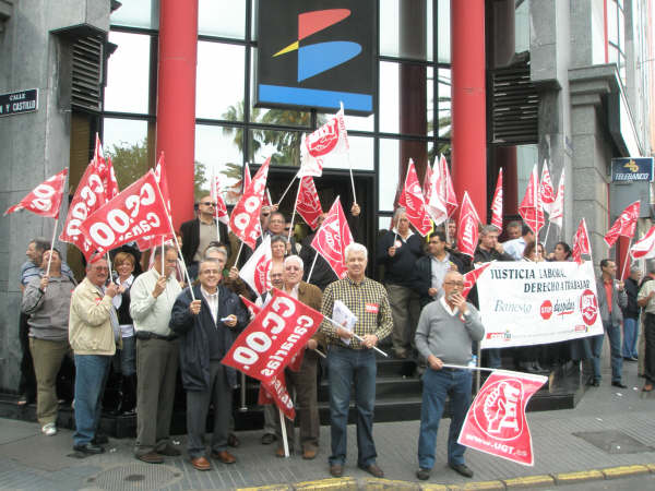 A continuación reproducimos algunas imágenes tomadas durante las concentraciones de delegados y delegadas de CCOO y UGT ante oficinas de Banesto de Tenerife el 30 de enero y Las Palmas el 3 de febrero en protesta por la política disciplinaria aplicada por el banco en los últimos tiempos. Banesto considera ahora que el despido es la única sanción posible ante cualquier falta.