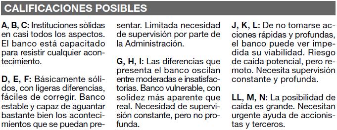 NOTA: Los números 1,2 y 3 que acompañan a las letras de calificación, indican el orden decreciente de posición de la entidad dentro de la misma letra