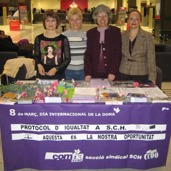 La secció sindical de l'SCH també va organitzar, com en anteriors anys, una taula on van repartir clavells i informació per a les treballadores. Aquest any amb el lema "Protocol d'Igualtat a SCH; aquesta és la nostra oportunitat".
