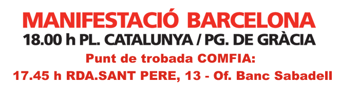 >> MANIFESTACIÓ A BARCELONA - Punt de trobada: a les 17.45 h Rda.Sant Pere, 13 - Of. Banc Sabadell