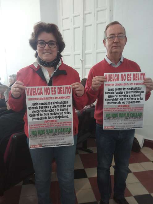En la reunión también se ha informado que el próximo día 3 de Febrero, a las 11 de la mañana, se celebra juicio en el Juzgado de lo Penal nº 4, en la Ciudad de la Justicia de Málaga, contra la compañera Lola Villalba, Secretaria General del Sindicato Provincial de Servicios y contra Gonzalo Fuentes, adjunto a la Secretaría General de la Federación de Andalucía y Secretario de Política Institucional de la Federación Estatal de Servicios. En este sentido, los asistentes han mostrado su apoyo y solidaridad a los compañeros, dirigentes de CCOO de Hostelería, con décadas de implicación y trabajo en la defensa de los derechos de la gente y de la lucha por las libertades en nuestra tierra, y que han sido imputados por el simple hecho de que, aún actuando siempre desde la corrección de las formas, son conocidos y visibles porque no se esconden. Por ello, estaremos el 3 de febrero junto a Lola y Gonzalo y, por ello, hacemos un llamamiento para que se acuda a la convocatoria de este juicio en apoyo a dos personas que han sido elegidas como víctimas propicias en esta ocasión, pero que forman parte de una lotería que le puede tocar a cualquiera de quienes vivimos de nuestro trabajo y queremos defender nuestros derechos.
