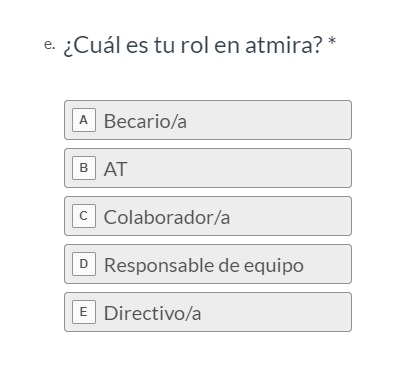 Queremos comentar esta pregunta porque salvo ?becario/a? o ?directivo/a?, que parecen claros, ¿qué o quién es ?AT?? ¿Quién es ?responsable de equipo?? ¿El que gestiona, el comercial de la unidad, el analista funcional/orgánico que hace de todo?