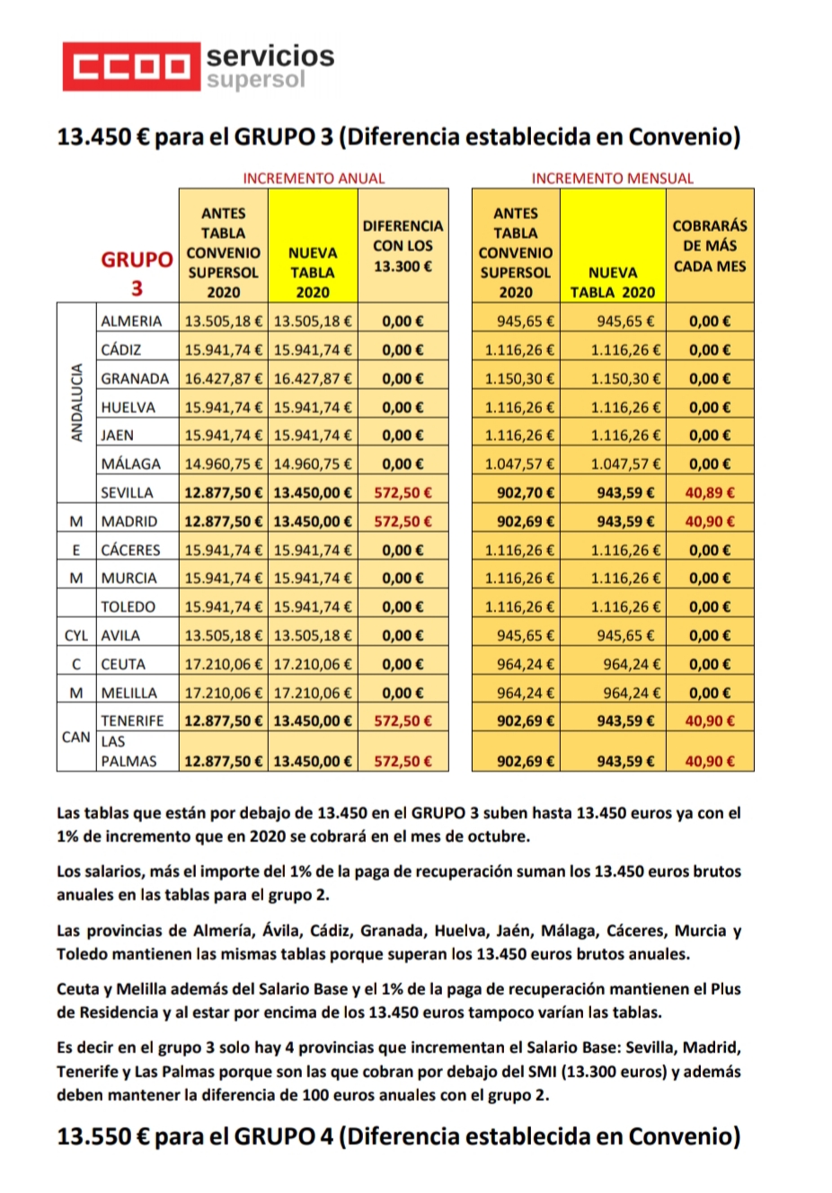 Desde CCOO en Supersol te informamos de cómo te afectará en tu salario estos cambios según el grupo al que pertenezcas y la provincia en la que estés.