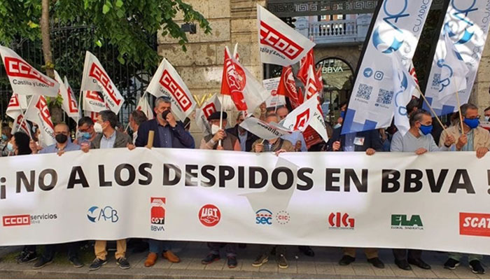 Las Movilizaciones vuelven a ser un éxito, más de 6.500 personas defienden los 3.800 puestos de trabajo frente a las sedes de BBVA en 21 ciudades