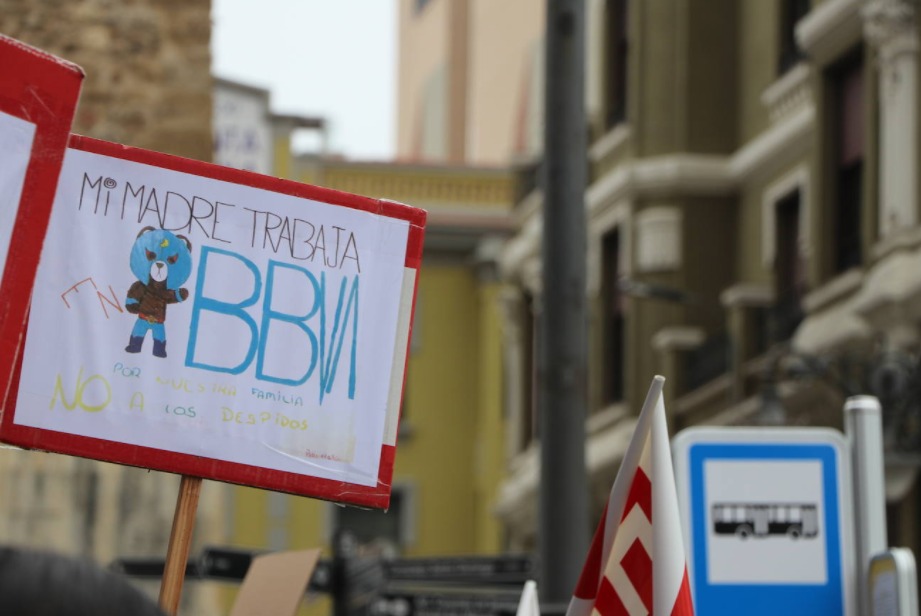 La plantilla del BBVA en Castilla y León ha secundado de forma masiva el paro de 24 horas que ha tenido lugar ayer miércoles día 2 de junio en todos los centros de trabajo del país con la intención de frenar el Ere “salvaje” que la entidad financiera quiere llevar a cabo con cerca de 3.300 despidos. El seguimiento de la misma en la Comunidad ha sido del 95%. Además, también se han llevado a cabo sendas concentraciones, entre las 11:00 y las 12:00 horas de la mañana, ante las oficinas de Duque de la Victoria de Valladolid, y la de la plaza de Santo Domingo en León, respectivamente.