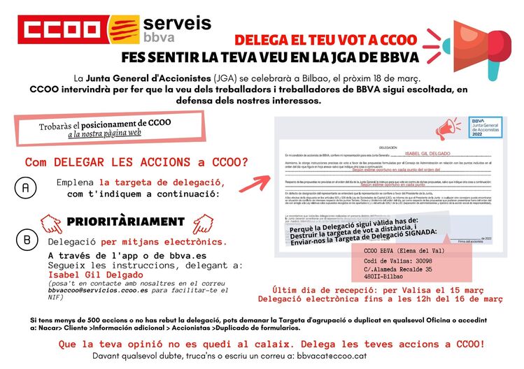 La Junta General d'Accionistes (JGA) se a Bilbao el pròxim 18 de març. CCOO intervindrà perquè la teva veu sigui escoltada, en defensa dels nostres interessos.