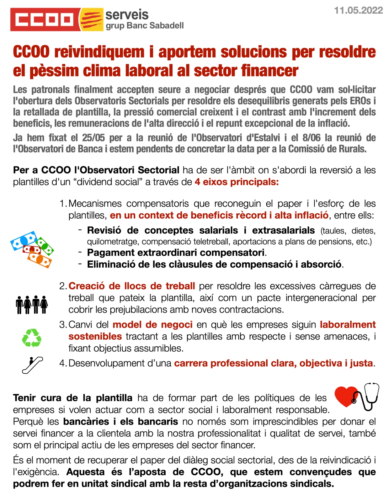 CCOO seiem a la Patronal per tractar salaris/compensacions, carrera professional i contractació de plantilla