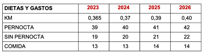 - Art. 40 Dietas y Gastos de Locomoción. En este apartado aún no hay un consenso definitivo entre las partes, la Patronal ha quedado en volver a analizar las propuestas sindicales, barajando estos datos orientativos como referencia: