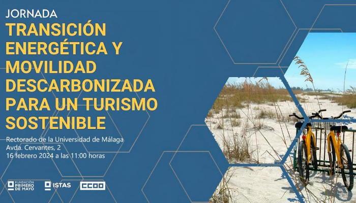 En la sala del Rectorado de la Universidad de Málaga, el Sindicato CCOO ha celebrado esta mañana una jornada en la que se ha presentado el estudio "Transición energética y movilidad descarbonizada para un turismo sostenible", elaborado por el Instituto Sindical de Trabajo, Ambiente y Salud (ISTAS) de la Fundación 1 de Mayo y que recoge las conclusiones de varios encuentros de debate celebrados en el año 2023 con actores empresariales, sociales, sindicales e institucionales en destinos turísticos como Benidorm, Málaga, Barcelona y León.