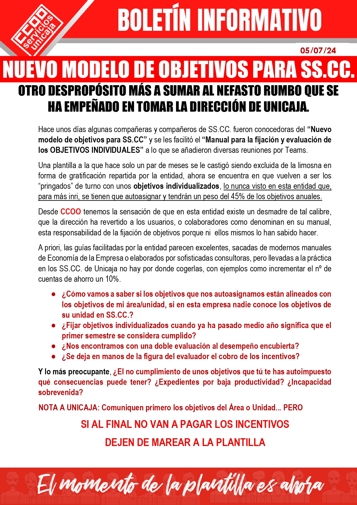Una plantilla a la que hace solo un par de meses se le castigó siendo excluida de la limosna en forma de gratificación repartida por la entidad, ahora se encuentra en que vuelven a ser los “pringados” de turno con unos objetivos individualizados, lo nunca visto en esta entidad que, para más inri, se tienen que autoasignar y tendrán un peso del 45% de los objetivos anuales.