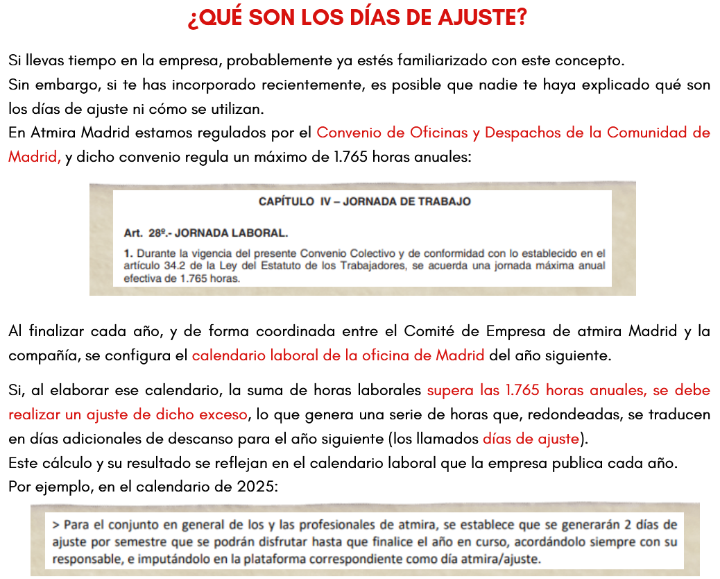Esta semana queremos hablar de los días de ajuste, es decir, aquellos días que cada persona trabajadora genera al superar las horas anuales máximas establecidas por convenio.