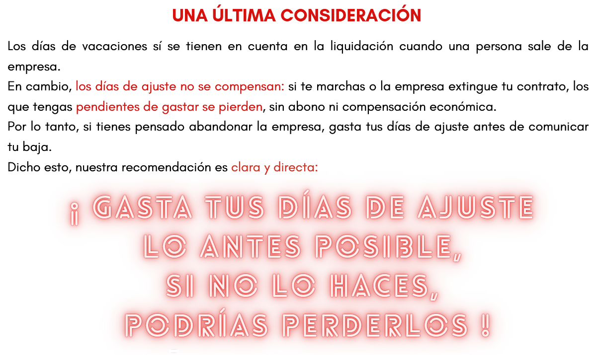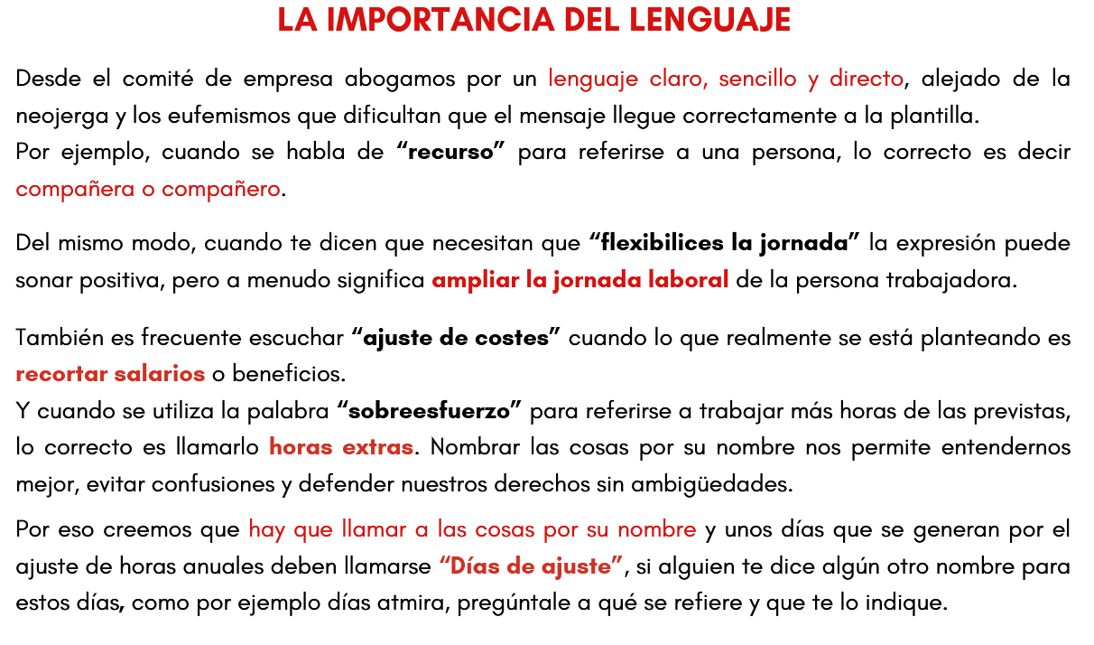 También queremos poner el foco en la importancia del lenguaje, los días de ajuste no son un regalo de la empresa, sino un derecho laboral.