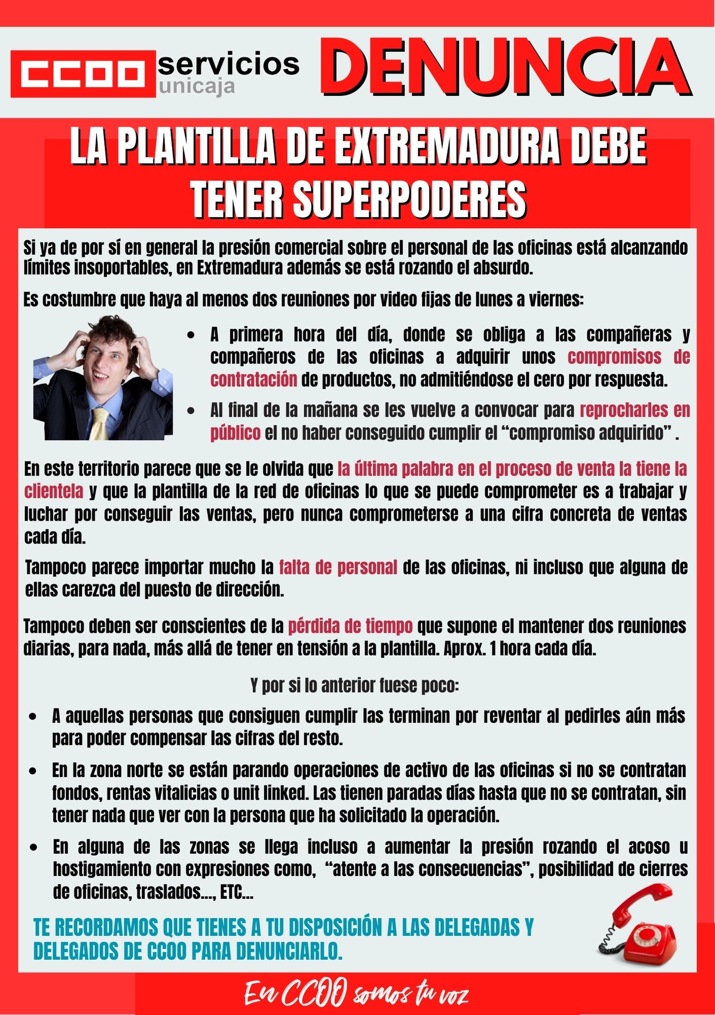Si ya de por sí en general la presión comercial sobre el personal de las oficinas está alcanzando límites insoportables, en Extremadura además se está rozando el absurdo.
