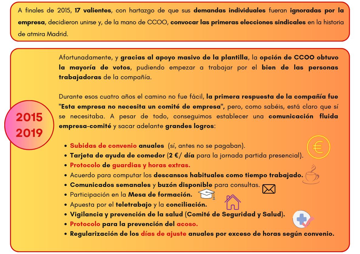 El 3 de diciembre el Comité de Atmira Madrid cumple 10 años, un tiempo en el que hemos trabajado para mejorar tus condiciones de trabajo y defender los derechos laborales en nuestra empresa.