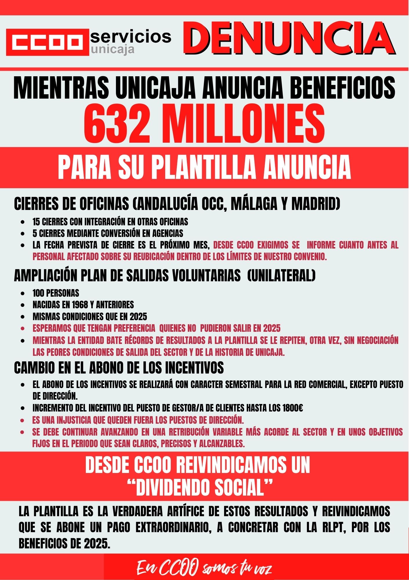 Mientras Unicaja anuncia benefecios por 632 millones de euros, para su plantilla anuncia...