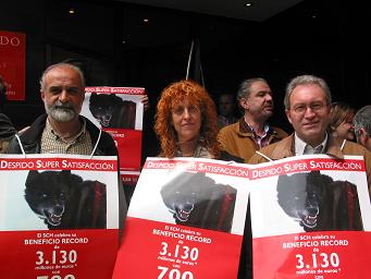 El Jueves 13 de mayo, 40 delegados y delegadas de CC.OO., UGT, CGT Y AMI se concentraron delante de la Oficina Principal de Oviedo del Banco Santander Central Hispano (SCH) en protesta por la política de recursos humanos que esta entidad está desarrollando.
