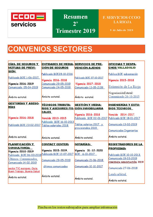 Convenios de los diferentes sectores que abarca nuestra Federación.