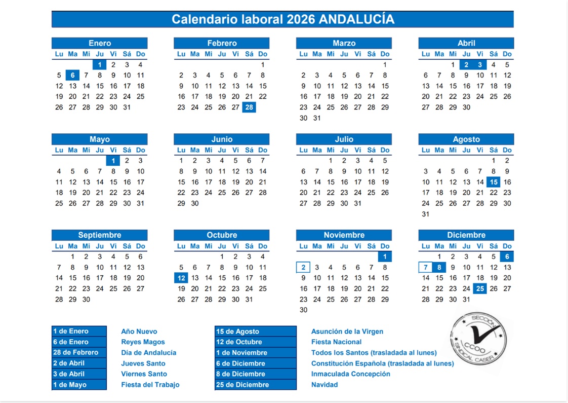 CALENDARIO LABORAL 2026 ANDALUCÍA