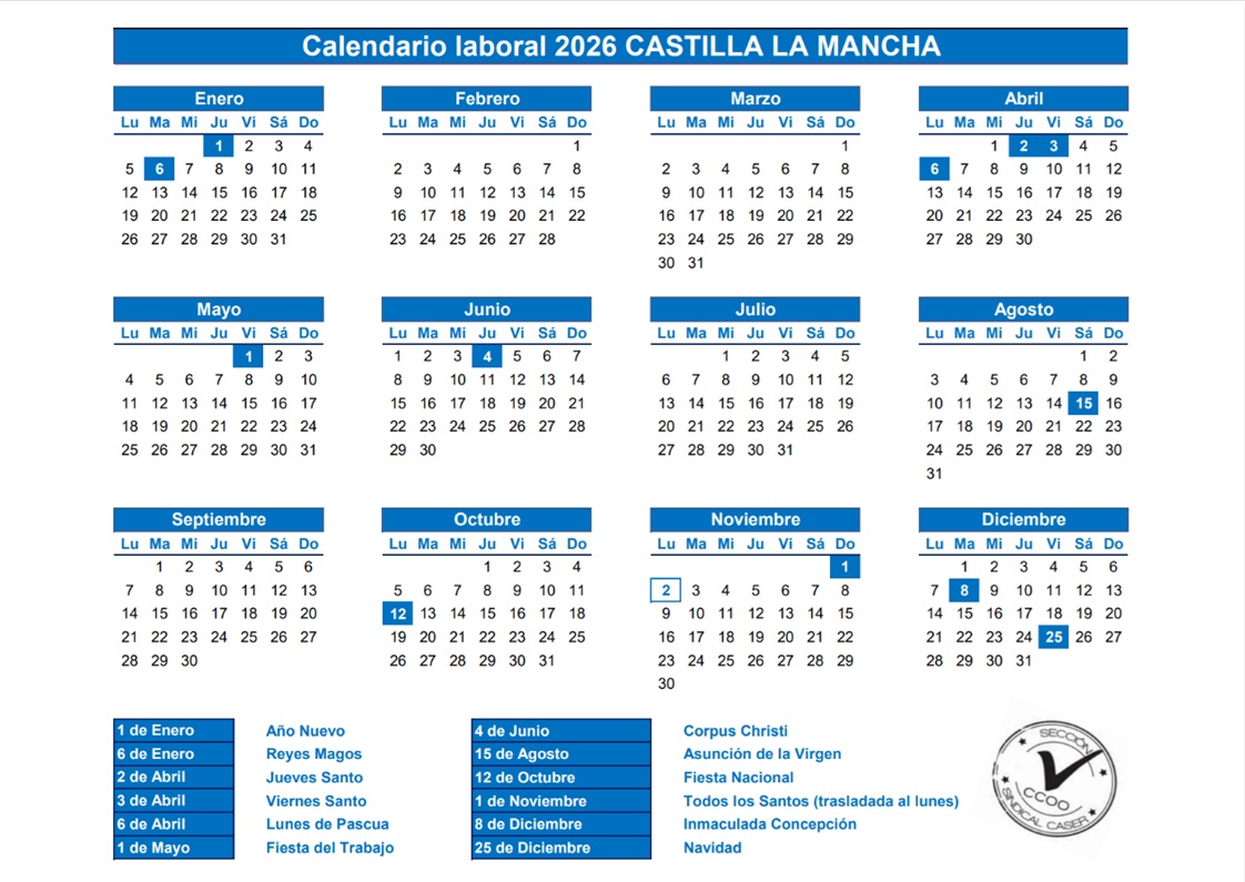 CALENDARIO LABORAL 2026 CASTILLA LA MANCHA