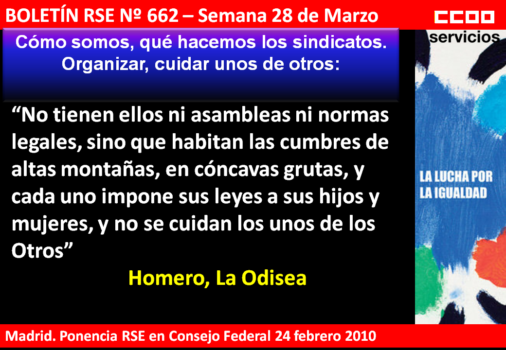 Miércoles 30 de Marzo de 2016. - Responsabilidad social de las empresas, economía colaborativa y gestión del cambio. Es necesario que empresas y sectores se adapten al necesario cambio productivo de una manera socialmente responsable. Cambio tecnológico, cambio climático, adaptación a nuevas y necesarias normas relacionadas con la transparencia y la sostenibilidad... El factor trabajo es el elemento clave. Por eso es tan importante el concepto de transición justa, relacionado con la adaptación al cambio climático pero que va mas allá. Los gobiernos deberían ayudar a que se aborde esta transición justa. No está ocurriendo. Un ejemplo: el sistema no está reaccionando bien frente a la denominada economía colaborativa (dos casos muy conocidos: Uber y Airbn), que sin duda afecta al empleo, por lo que estamos especialmente implicados (ver). Esta tensión se está reflejando en su necesaria regulación, sobre la que incidiremos. En Comisión Nacional de Mercados y Competencia (CNMC) se están poniendo en evidencia esas tensiones (ver artículo en el digital Bez: Estalla la guerra en la CNMC por el informe sobre economía colaborativa) Es algo que está ocurriendo también con el abuso del emprendimiento, por ejemplo. En esencia, el objetivo es que no se incremente la pobreza laboral (o incluso lo que se está reconociendo existe: las nuevas formas de esclavitud) a partir de iniciativas que podrían ser interesantes. Link |