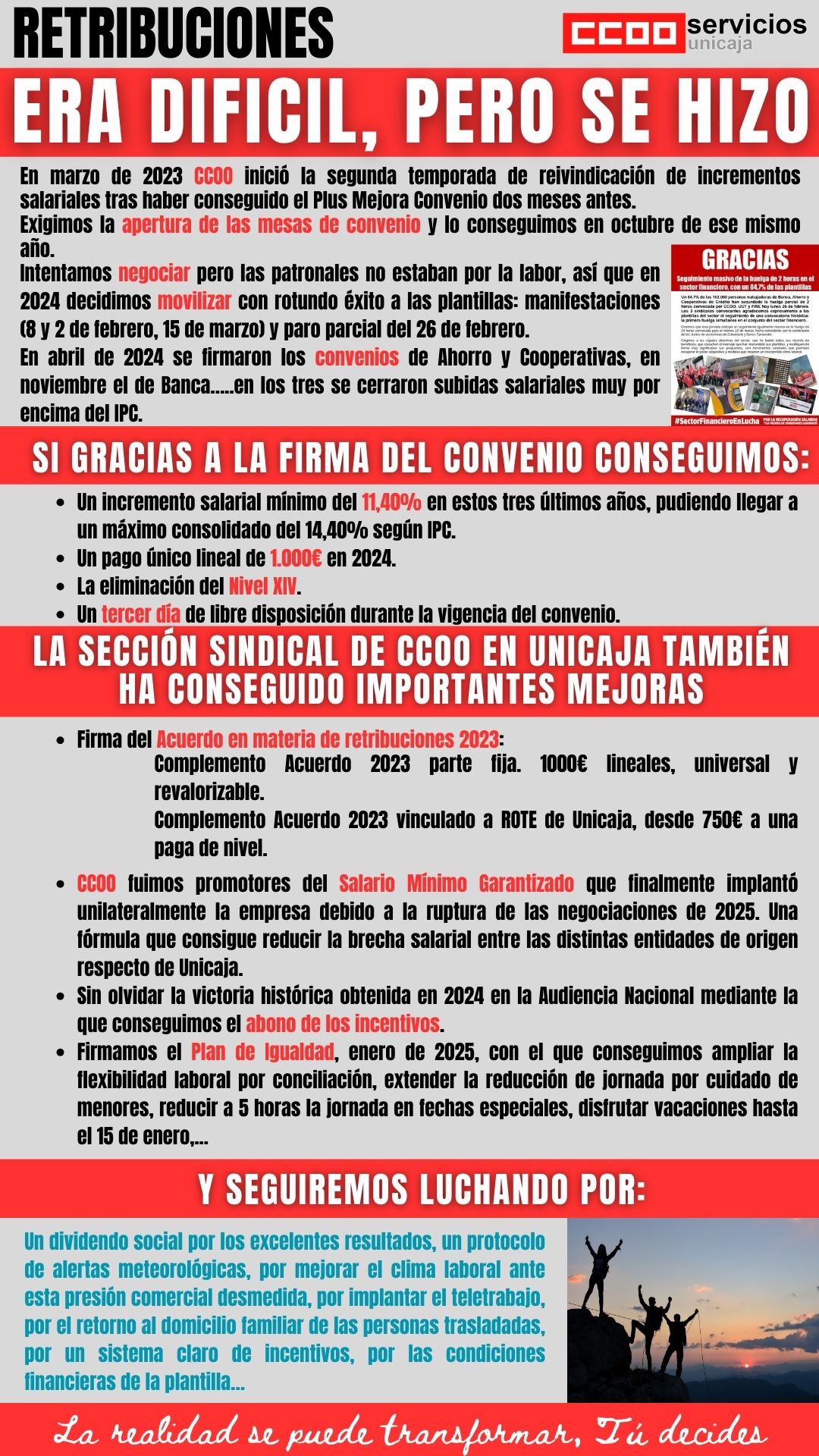 En abril de 2024 se firmaron los convenios de Ahorro y Cooperativas, en noviembre el de Banca…..en los tres se cerraron subidas salariales muy por encima del IPC.